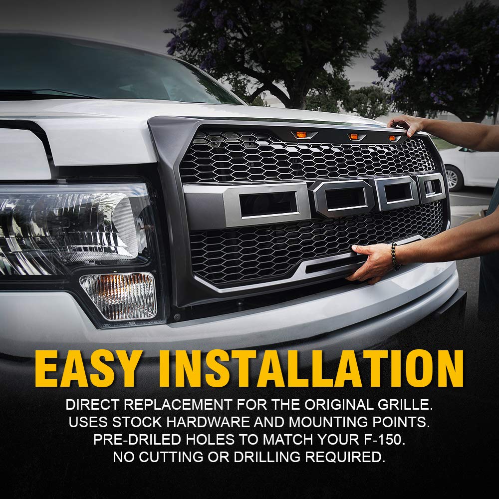 2018 ford f150 grill replacement. Lovinouse replacement front grille for ford f 150 2018 2019 2020 rebel style mesh upper grill honeycomb bumper with 3 led amber lights. 2 pc chrome or painted type 2. Ford f 150 2018 rivet style black powder coated carbon steel 25mm wire mesh main grille by apg 2 piece.