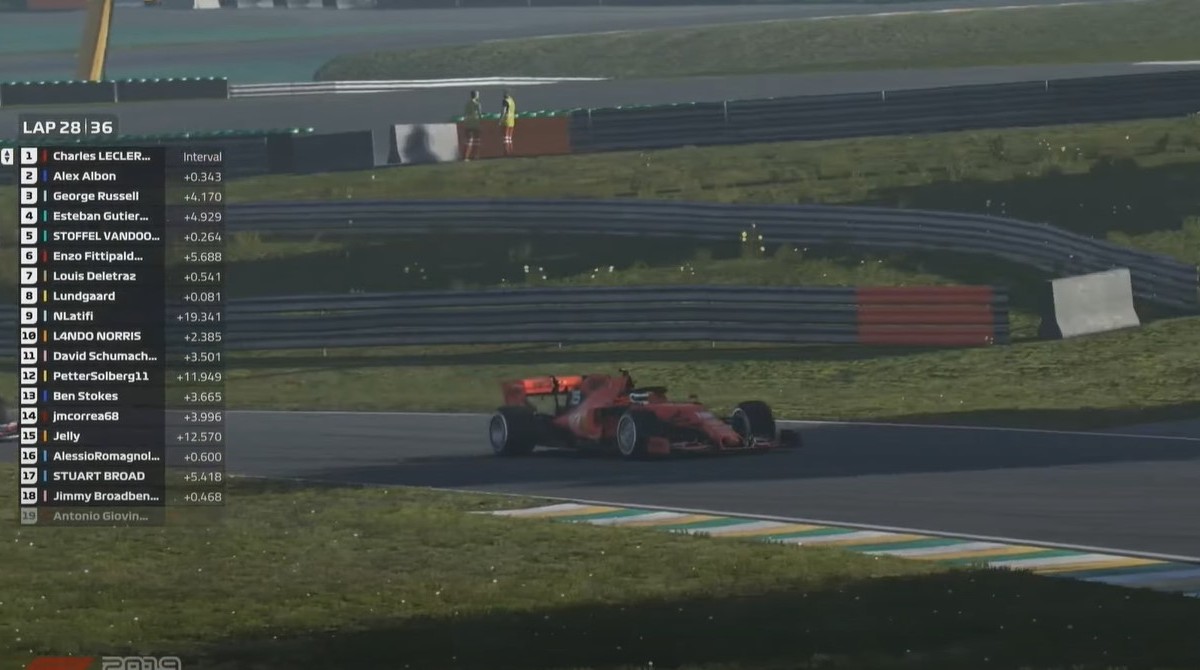 A csapaton belueli rivalizalas a formula 1 velejaroja epp ezert albon halas erte hogy a holland nem kezdett belso jatszmakba ereztetni probalva vele hol a helye. Alex albon teljesitmenye tovabbra is a 2020 as szezon egyik legnagyobb kerdojele a thai pilota ismet a hullamvasut egyik legmelyebb pontjan van miutan 11 masodpercet kapott csapattarsatol max verstappentol. Ricciardo esta 21 detras suyo en cuarta posicion.