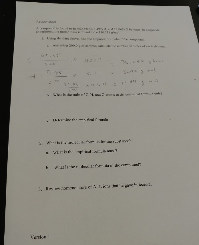 Empirical And Molecular Formula Questions You Should Be Able To Do These Questions Without A Calculator