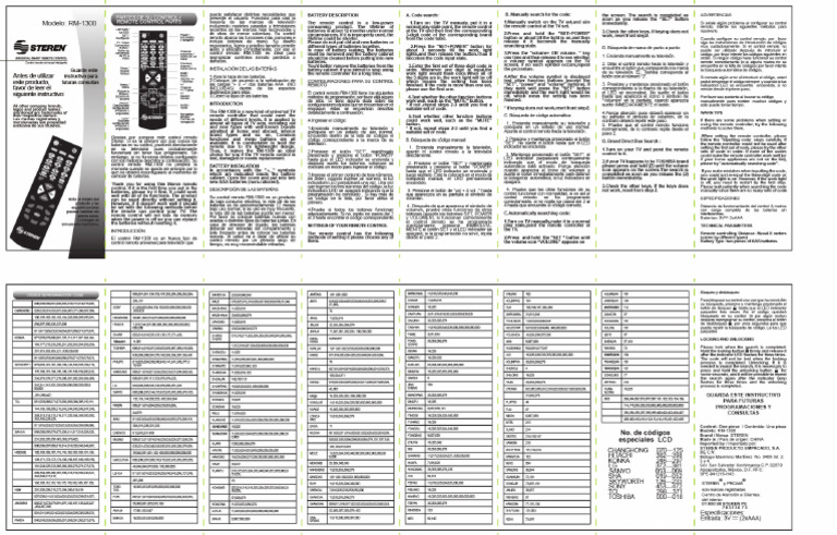 Puede ocasionar un mal funcionamiento y se anulara la garantia. Les dejo un rapido instructivo de como programar tu control universal steren rm 1300 sin embargo te sirve para cualquier de la misma marca ya que trabajan. Evite las caidas del equipo ya que podria sufrir danos.