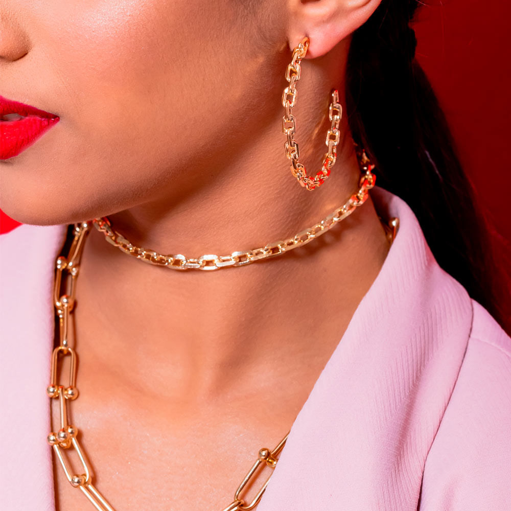 Mix De 2 Colares Com Correntes Cartier Folheado Em Ouro 18k Francisca Joias