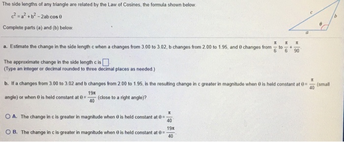 Also we can rewrite the c 2 a 2 b 2 2ab cosc formula into a 2 and b 2 form. B catetele c ipotenuza triunghiului dreptunghic unghiul opus catetei a. So xab and ya b 24 and cos xcos ycosabcosa b expanding the right hand side using the compound angle formula.