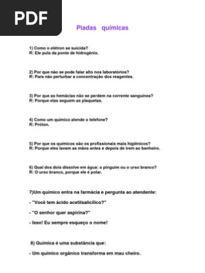 Em 1931 o quimico americano linus pauling propos que o benzeno possuia uma estrutura unica que era um hibrido de ressonancia das duas estruturas de kekule. Dois ursos pulam na agua mas so um se dissolve por que. Qual o barulho de um quimico caindo de um edificio.