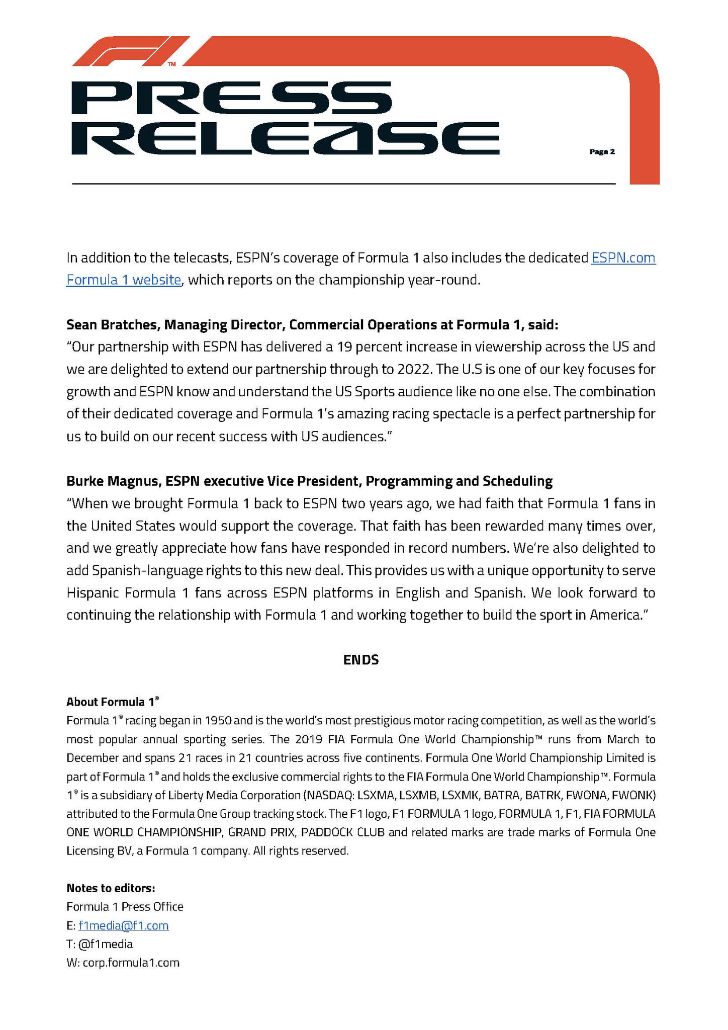 Espn formula 1 broadcast schedule 2019 usa. 2019 formula 1 schedule and tv times. Formula 1 is pleased to announce that its successful partnership with broadcaster espn in the usa will continue until 2022 season included. F1 calendar 2020 2020 2019 2018 2017 2016 2015 2014 2013 2012 2011 2010 2009 2008 2007 2006 2005 2004 2003 2002 2001 2000 1999 1998 1997 1996 1995 1994 hidden date.