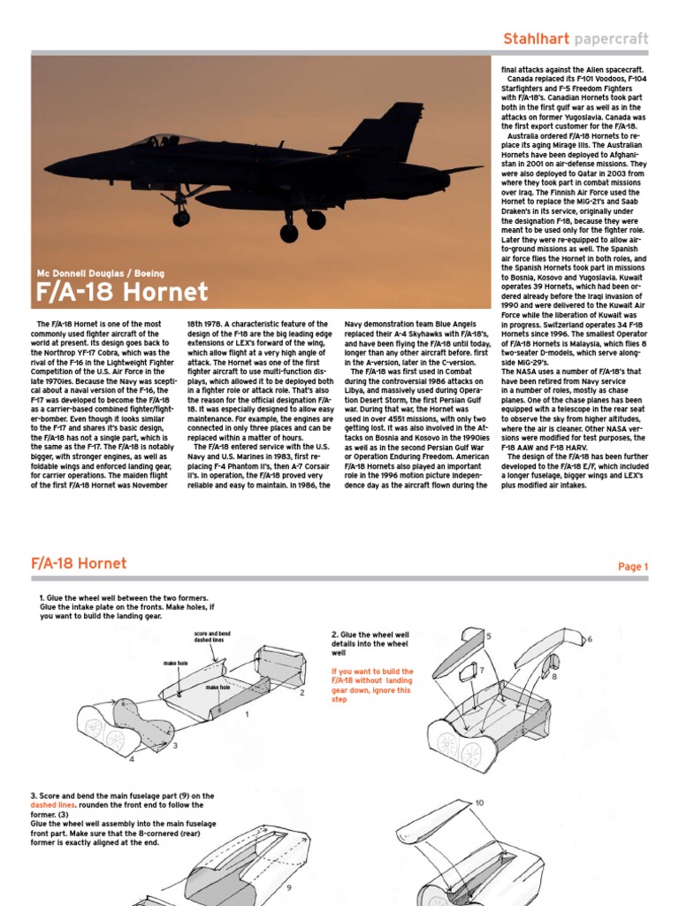 F 18 papercraft. Fa 18 hornet papercraft amerykanski samolot wielozadaniowy fa 18 hornet papercraft mcdonnell douglas fa 18 hornet the mcdonnell douglas now boeing fa 18 hornet is a twin engine supersonic all weather carrier capable multirole combat jet designed as both a fighter and attack aircraft fa designation for fighterattack. The super hornet has an internal 20 mm m61 rotary cannon and can carry air to air missiles. The scale of this model is about 168 but the scale of the original file was 148 i have reduce it to 168 by print 2 page of template into one page.