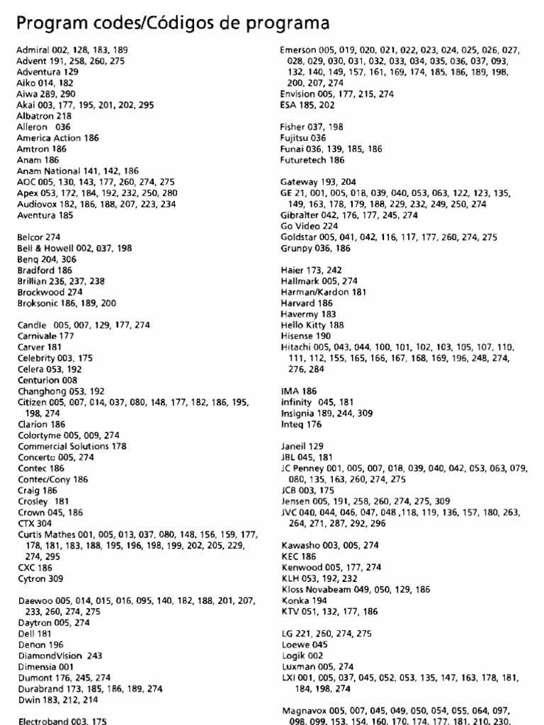 Codes for universal remotes has the remote control codes you need to control all your devices and componentsfind your tv television dvd blu ray player receiver satellite box cable box vcr players combo players media box and surround sound component codes all in one place. Other branded remotes can be searched for on the internet to find the associated manual or list of codes. To program a universal or tv remote control.
