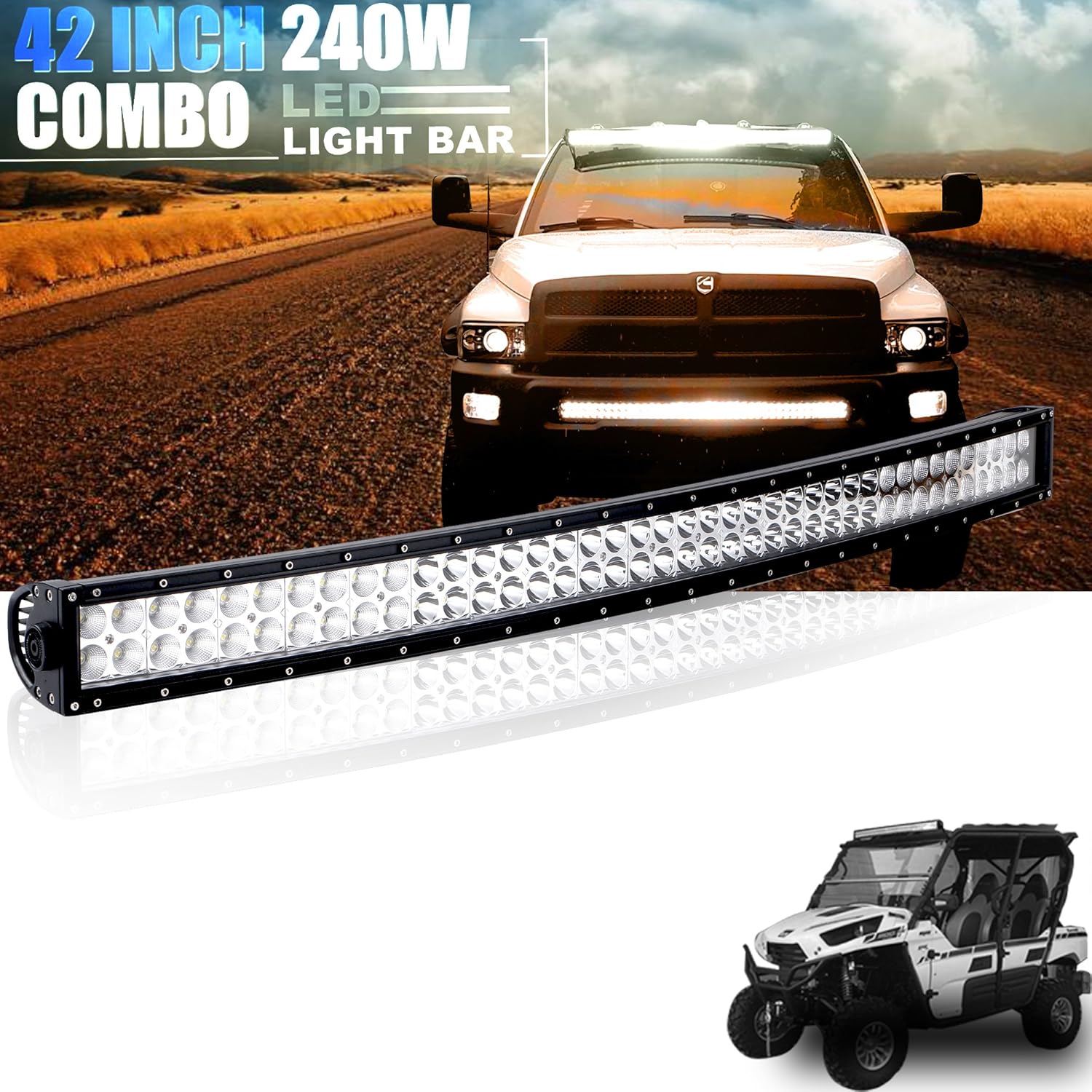 42in Combo Curved Led Light Bar On Grille Front Bumper Roof Rack Bar For Ford F150 Truck Dodge Ram 1500 Polaris Ranger Jeep Silverado Toyota Tacoma Fj Cruiser Honda Pioneer Can Am