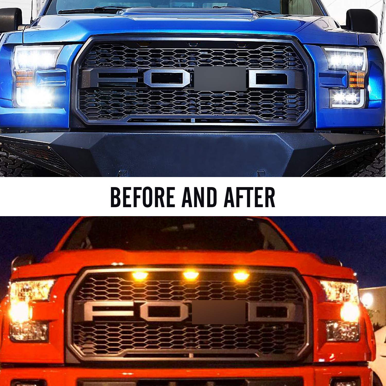Ford raptor amber grill lights. These kits drop right in behind your f150s grille and tie into your trucks parking light wiring so that you get the good looks of a raptors grille light. Motorfansclub 3pcs amber led grille running lamps front bumper hood grille led light fit for compatible with ford f150f250 raptor 2004 2014 2014 up grille not included 35 out of 5 stars 44 2599 25. Matte black front grill hood grille compatible with ford f150 raptor style 2009 2014 for replaceable letters fr letters 3 amber led lights 41 out of 5 stars 19 11999 119.
