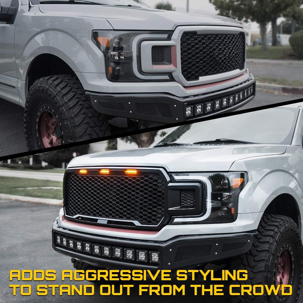 Xprite Raptor Style Grille For 2018 2019 Ford F 150 Front Grill With Three Amber Running Lights And Letters Grilles