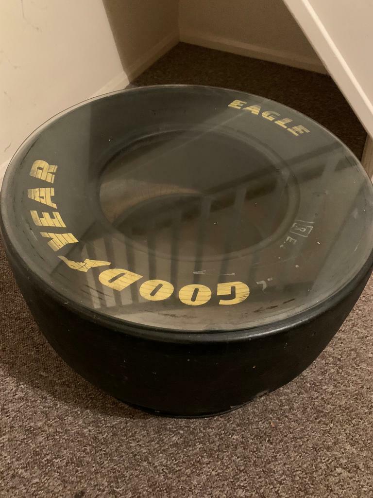Decorating a coffee table s design blog. F1 formula 1 goodyear tyre collectable great mancave or upcylced piece.