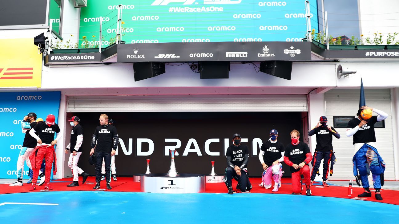 Formula one drivers came together to take a knee in a show of solidarity against racism ahead of sundays season opening austrian grand prix. Other teams and drivers have also made their own statements while formula 1 launched the weraceasone initiative tasked with tackling racism and inequality in the sport. Formula one drivers stood united against racism ahead of sundays austrian grand prix season opening race.