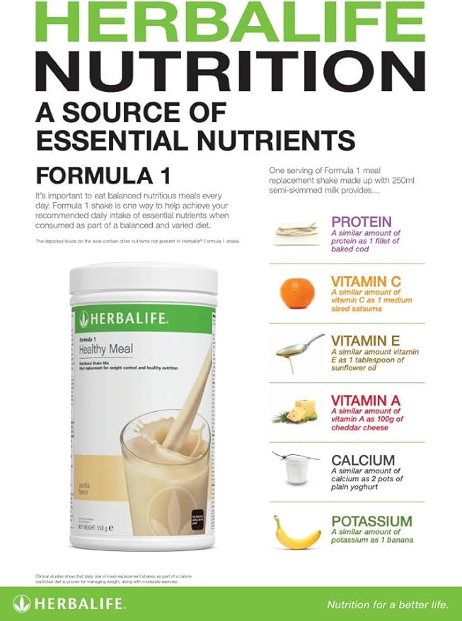 Whether youre on the go or just want a nutritious meal reach for an herbalife formula 1 shake to satisfy your hunger and help manage your weight. Available in a water mixable on the go powder each serving of formula 1 instant healthy meal nutritional shake mix is formulated to combine easily with water to become a rich creamy delicious shake. It contains essential nutrients fiber and protein that are useful in supporting metabolic function at a cellular level.