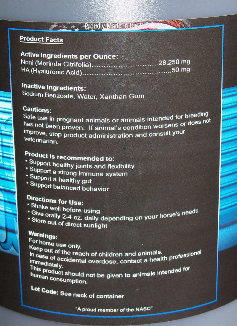 We started using formula 1 noni blue label around a month ago. Healthy cells lead to healthy tissues healthy tissues lead to healthy organs healthy organs lead to healthy systems and healthy systems lead to healthy body. If i had to choose only one supplement for my horses i would choose f1 noni.