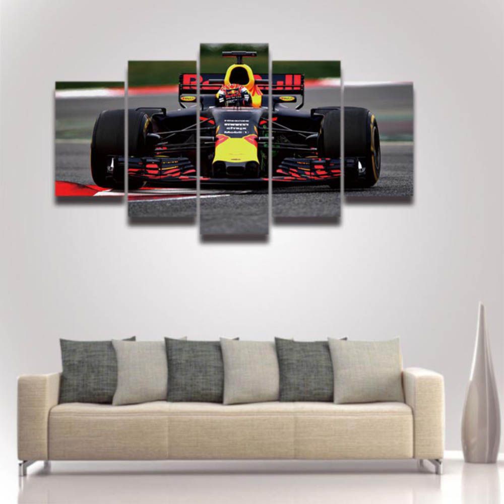 Amazon Com 5 Pieces Racing Car Canvas Print Red Bull F1 Team Racing At Formula One Pictures Catalunya Circuit Wall Art Canvas Multiple Sizes Gallery Wrapped Canvas On Pine Wooden Frame Ready To
