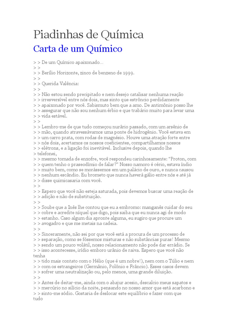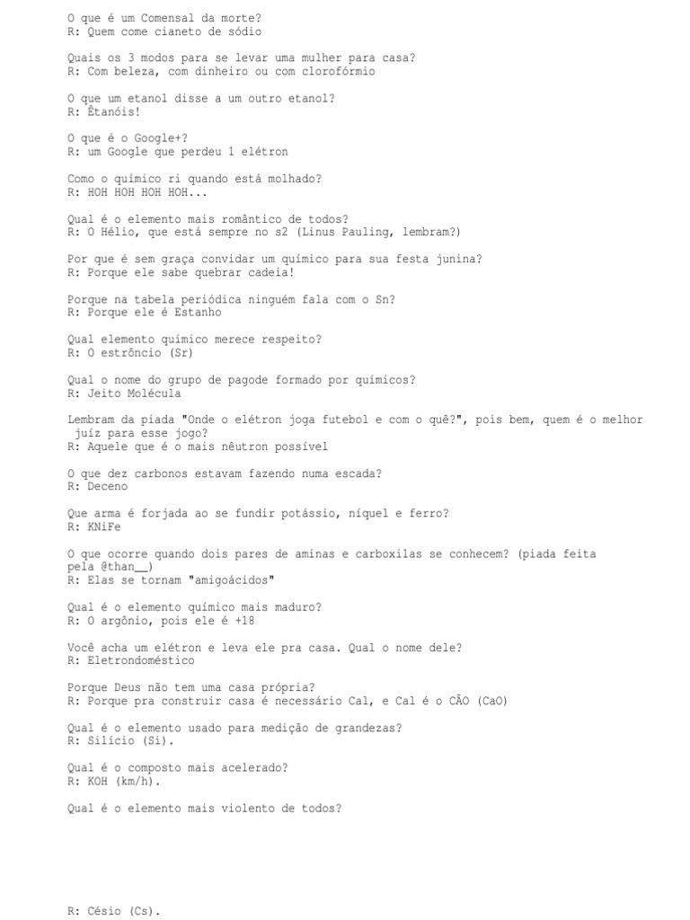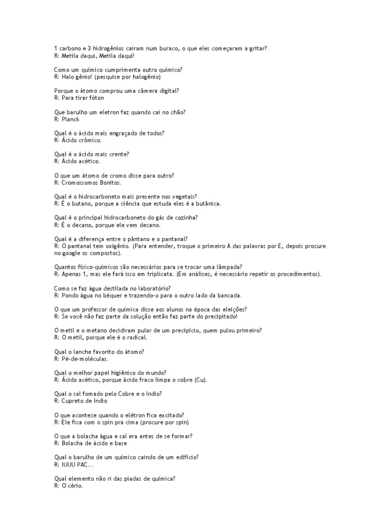1 meteno e 2 benzenooracao do quimico. Qual elemento nao ri dessas piadas. Veja mais sobre quimica em.