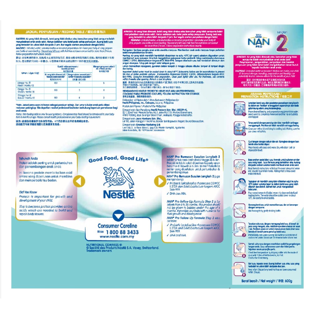 Nan pro 2 gold contains bifidus bl a beneficial probiotic bacteria for healthy infants from 6 months of age. 2wash bottle teat and cap thoroughly until no milk remains. Leave covered until use.
