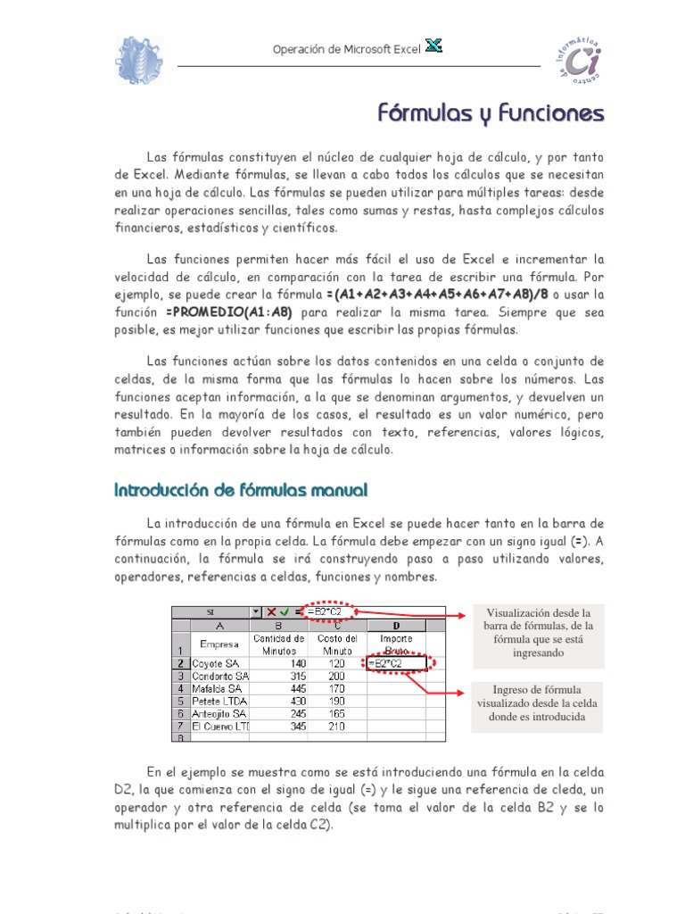 Ambos recursos facilitan las operaciones matematicas y comienzan por el simbolo. Separan los valores individuales referencias de celda y rangos de celdas en los parentesis. La funcion y en excel es una funcion logica que nos permitira evaluar varias expresiones logicas y saber si todas ellas son verdaderas.