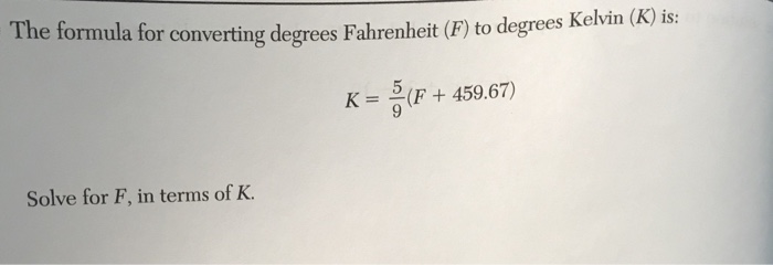 T 0f t k 95 45967. Use this formula to convert a temperature in kelvin k to fahrenheit 0f. Kelvin k to fahrenheit 0f temperature conversion.