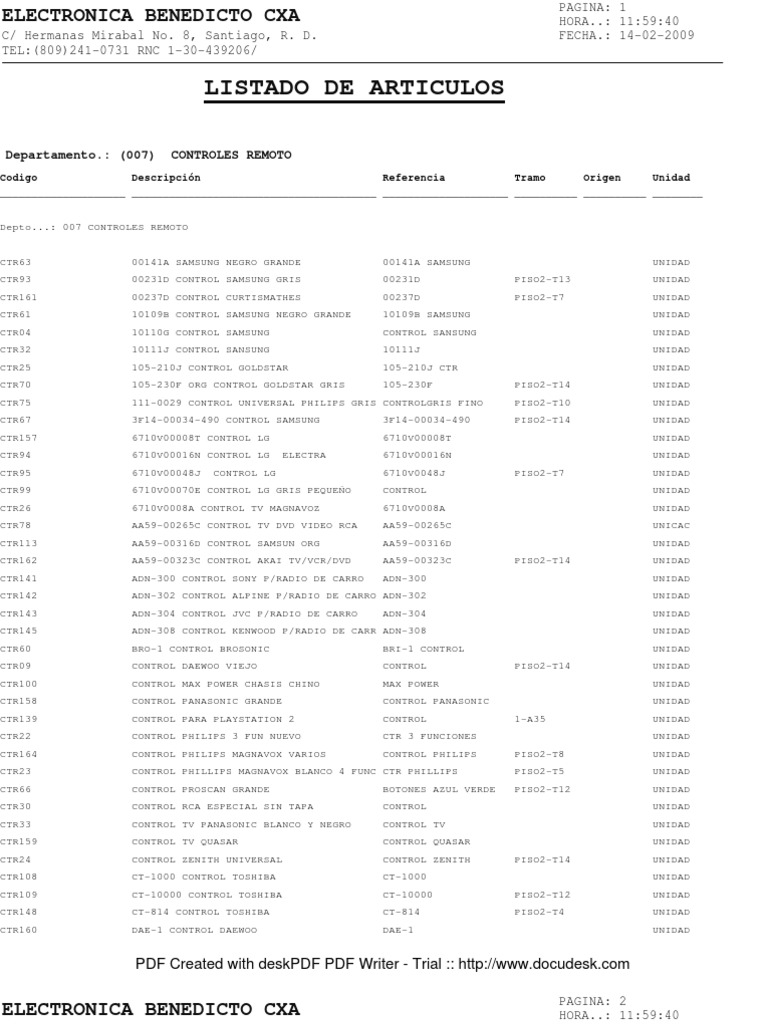 Lista de codigos los codigos de las marcas son utilizados para programar utilizando. Un control remoto universal como el fabricado por rca se puede programar con un codigo numerico para operar gran variedad de equipos de audio y video. 1006 1045 1054 1094 1125 1167 1133 1230.