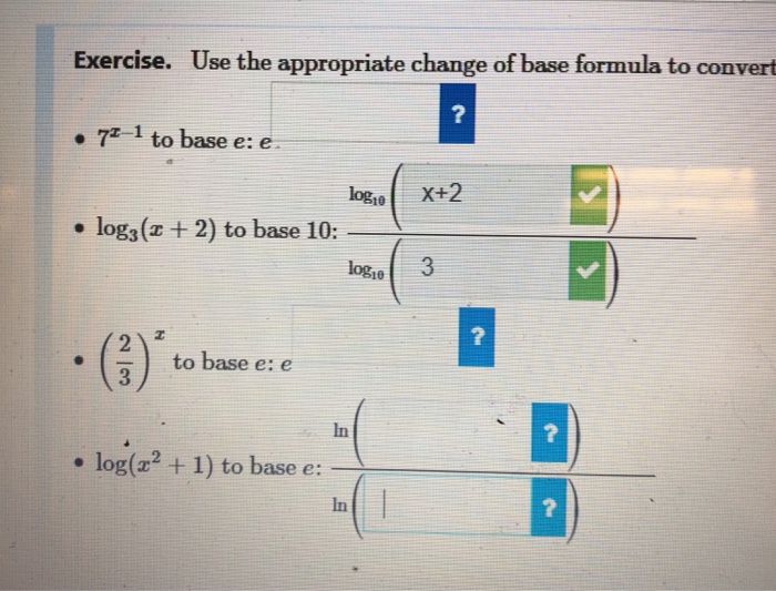 Change of base formula this formula is used to change a less helpful base to a more helpful one generally base 10 or base e since these appear on your calculator but you can change to any base. Ln x to mean loge x that is log x to. In the formula below a is the current base of your logarithm and b is the base you would like to have instead.
