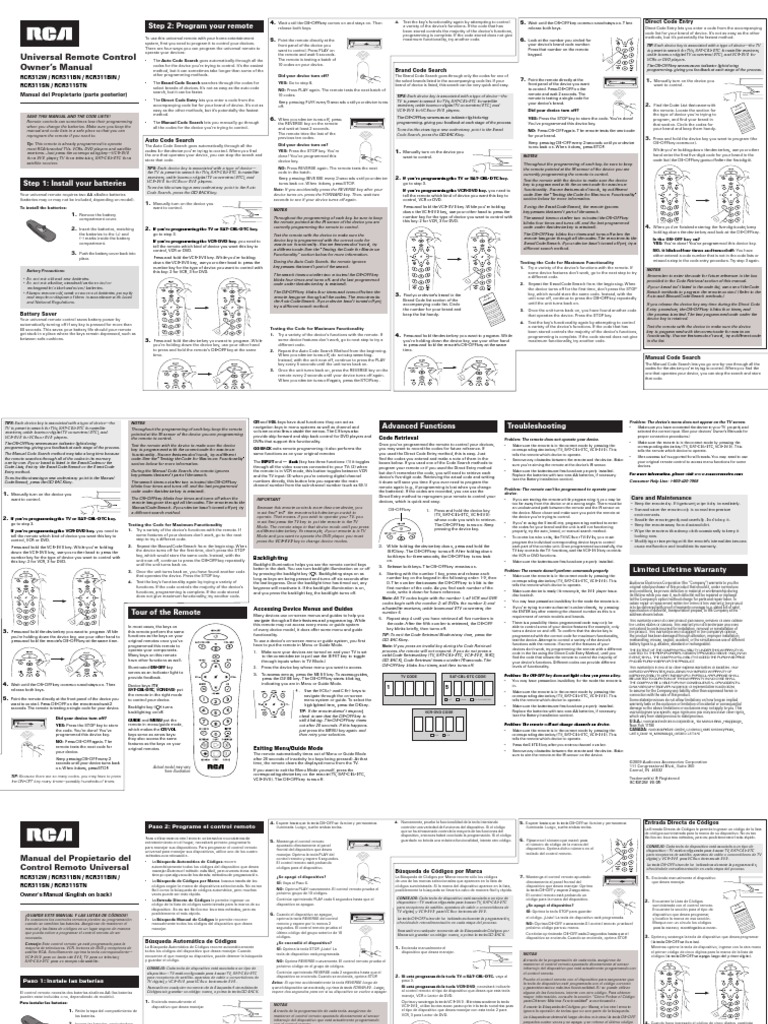 Manual control universal rca codigos. Automaticamente el sistema le brindara codigos posibles. Por supuesto con este control viene un manual con las marcas y codigo numericos que corresponden a cada uno. El control universal es muy versatil por su facilidad en la programacion y te permite configurarlo con diferentes aparatos que soportan el uso de un control remoto por lo que te explicaremos los codigos de control universal rca para tv.