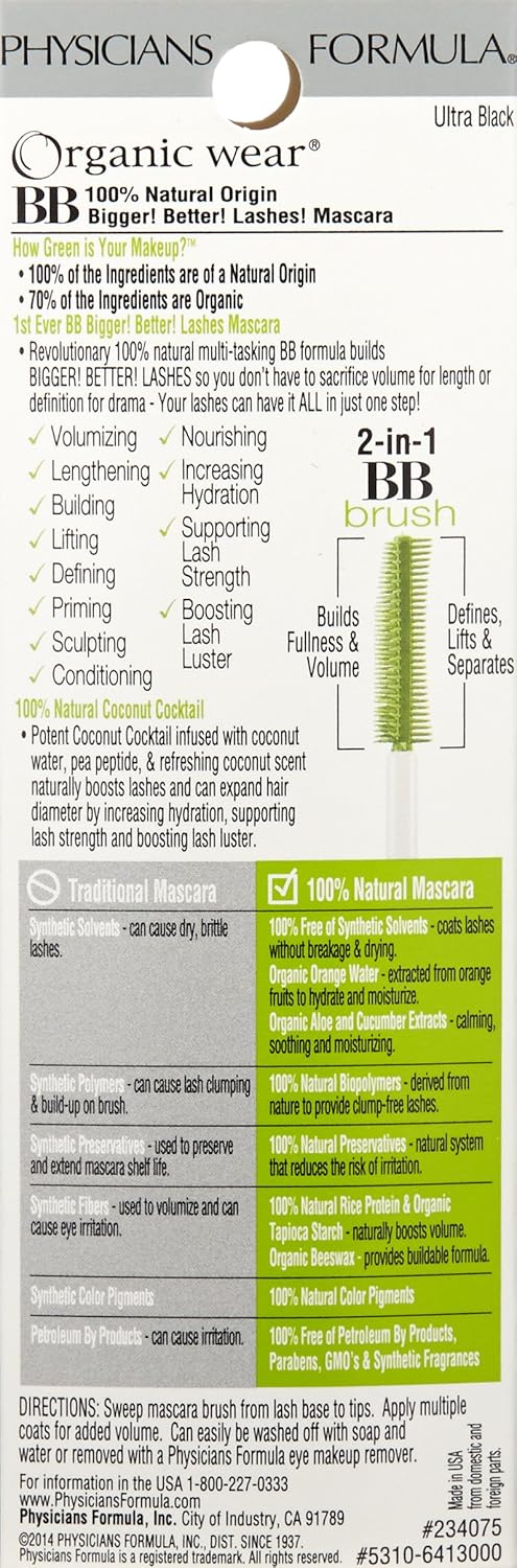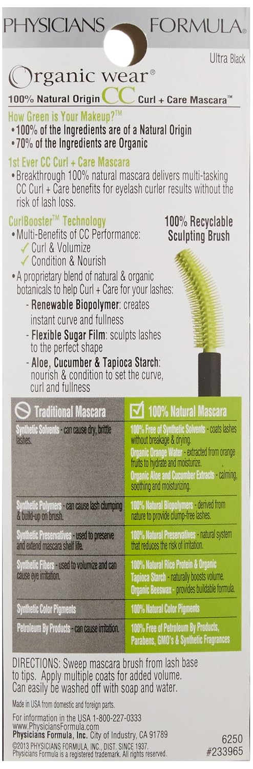 Amazon Com Physicians Formula Organic Wear 100 Natural Origin Cc Mascara Ultra Black 0 26 Ounce Beauty