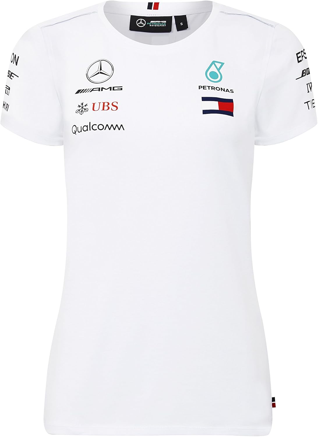 Amazon Com Mercedes Benz Petronas Amg Formula 1 Women S White Team Logo T Shirt F1 Clothing