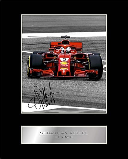 Iconic Pics Espositore Con Foto Autografata Di Sebastian Vettel Pilota Della Ferrari Nel Campionato 2018 2019 Stampa Regalo Autografata Con Espositore Amazon It Elettronica