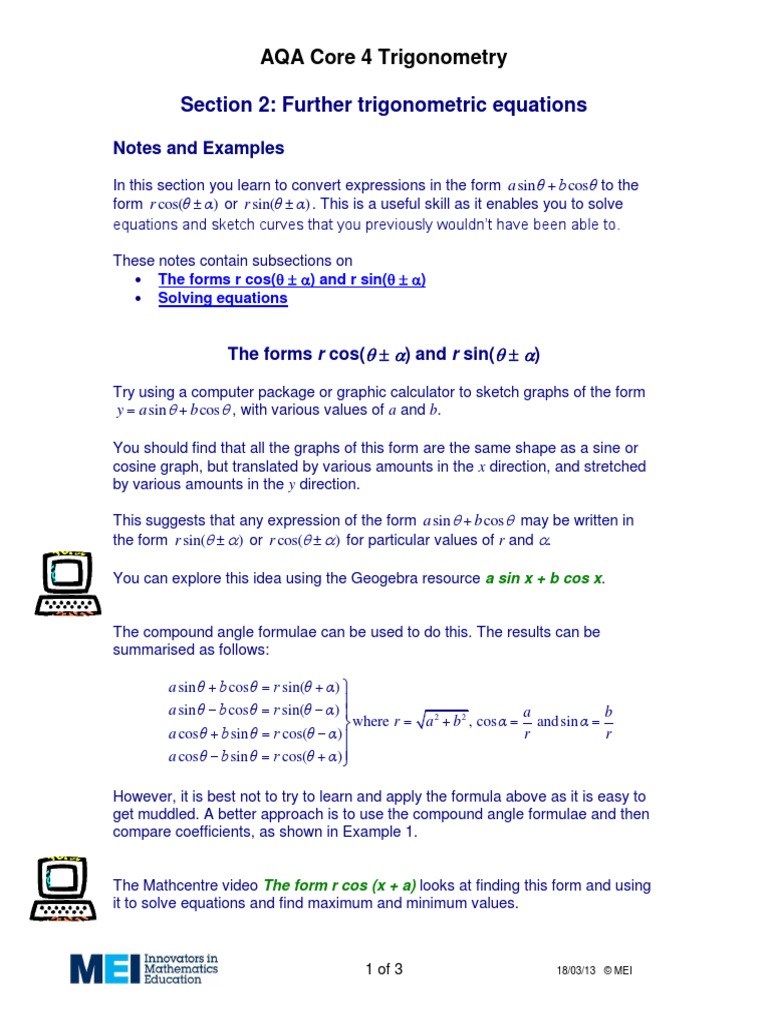 Expressing a sin o b cos o in the form r sino a. Last week i taught my class on the topic of r formula in a maths trigonometry. It is more convenient to write such expressions using one single term.