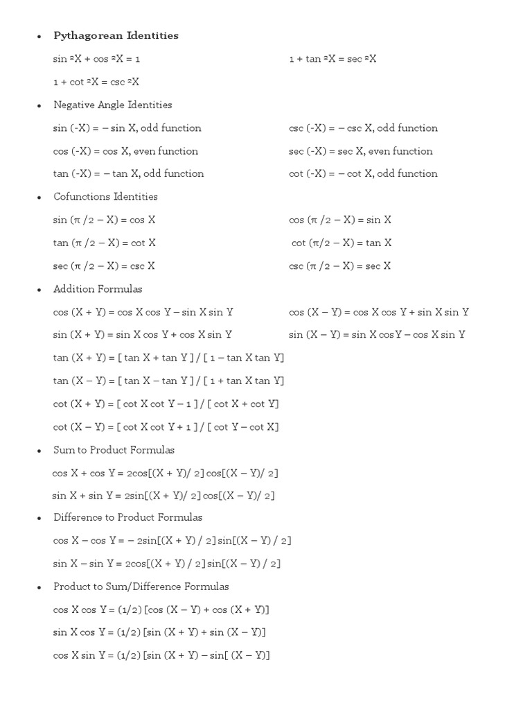 Trigonometry is a part of geometry where we learn about the relationships between angles and sides of a right angled trianglein class 11 and 12 maths syllabus you will come across a list of trigonometry formulas based on the functions and ratios such as sin cos and tansimilarly we have learned about inverse trigonometry concepts also.