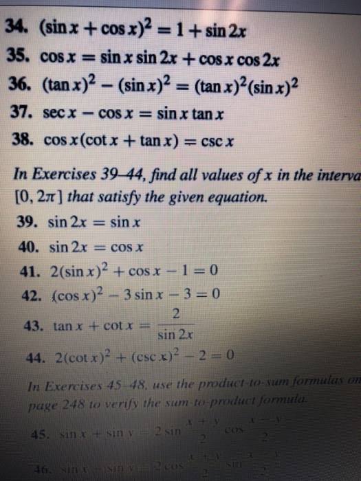 Sinx cosx sin x sin y formula. Squaring both sides gives 1 2 sin 2 x cos 2 x 2 cos x sin x sin 2 x 1 sin 2 x or sin 2 x 0 this suggest x k p 2 for k z but care must be taken to eliminate the ones for which cos x sin x 1. Free trigonometric equation calculator solve trigonometric equations step by step this website uses cookies to ensure you get the best experience. Sum to product formulas cosx cosy 2cos x y 2 cos x y 2 sinx siny 2sin x y 2 cos x y 2 difference to product formulas.