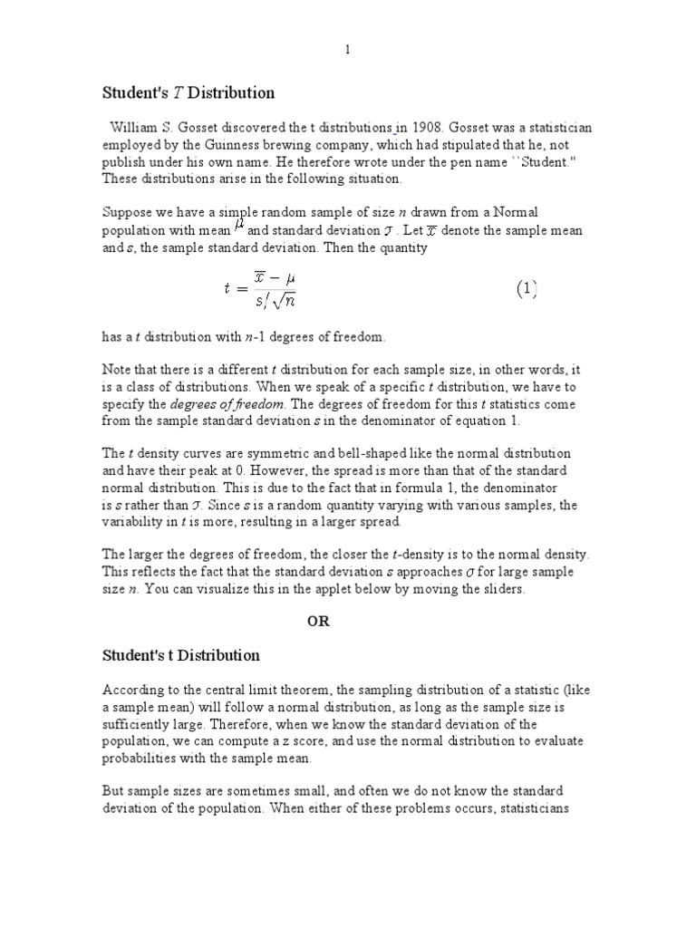 The t distribution also appeared in a more general form as pearson type iv distribution in karl pearsons 1895 paper. The term t statistic is abbreviated from hypothesis test statisticcitation needed in statistics the t distribution was first derived as a posterior distribution in 1876 by helmert and lueroththe t distribution also appeared in a more general form as pearson type iv distribution in karl pearsons 1895 paper. You then use these values to determine confidence values.