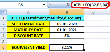 In the example shown the settlement date is 5 feb 2019 the maturity date is 1 feb 2020 and the discount rate is 254. Then divide by 360 to get 075 and subtract 100 minus 075. As a worksheet function tbillyield can be entered as part of a formula in a cell of a worksheet.