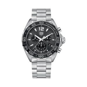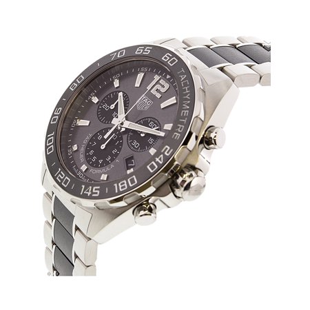 At a glance fine brushed and polished stainless steel and black ceramic bracelet 43mm stainless steel case with a black ceramic bezel and 200m water resistance scratch resistant sapphire crystal black dial with arabic numeral and baton hour markers. Tag heuer mens formula 1 swiss quartz stainless steel dress watch colorsilver toned model. Protected by sapphire crystal glass the stunning anthracite dial plays host to rhodium plated luminescent hands and hour markers three chronograph sub dials and a.