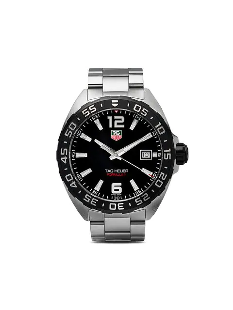 Featuring a black analog dial date display seconds sub dial and a silver stainless steel band this watch is an elegant addition to your wardrobe and watch collection. The tag heuer mens wau1110ba0858 formula 1 black dial stainless steel quartz watch is a sleek and sophisticated timepiece made for a man with discriminating taste. Tag heuer did it gracefully and retained the formula 1 dna as well as that autavia style case that the new formula 1 watches have.