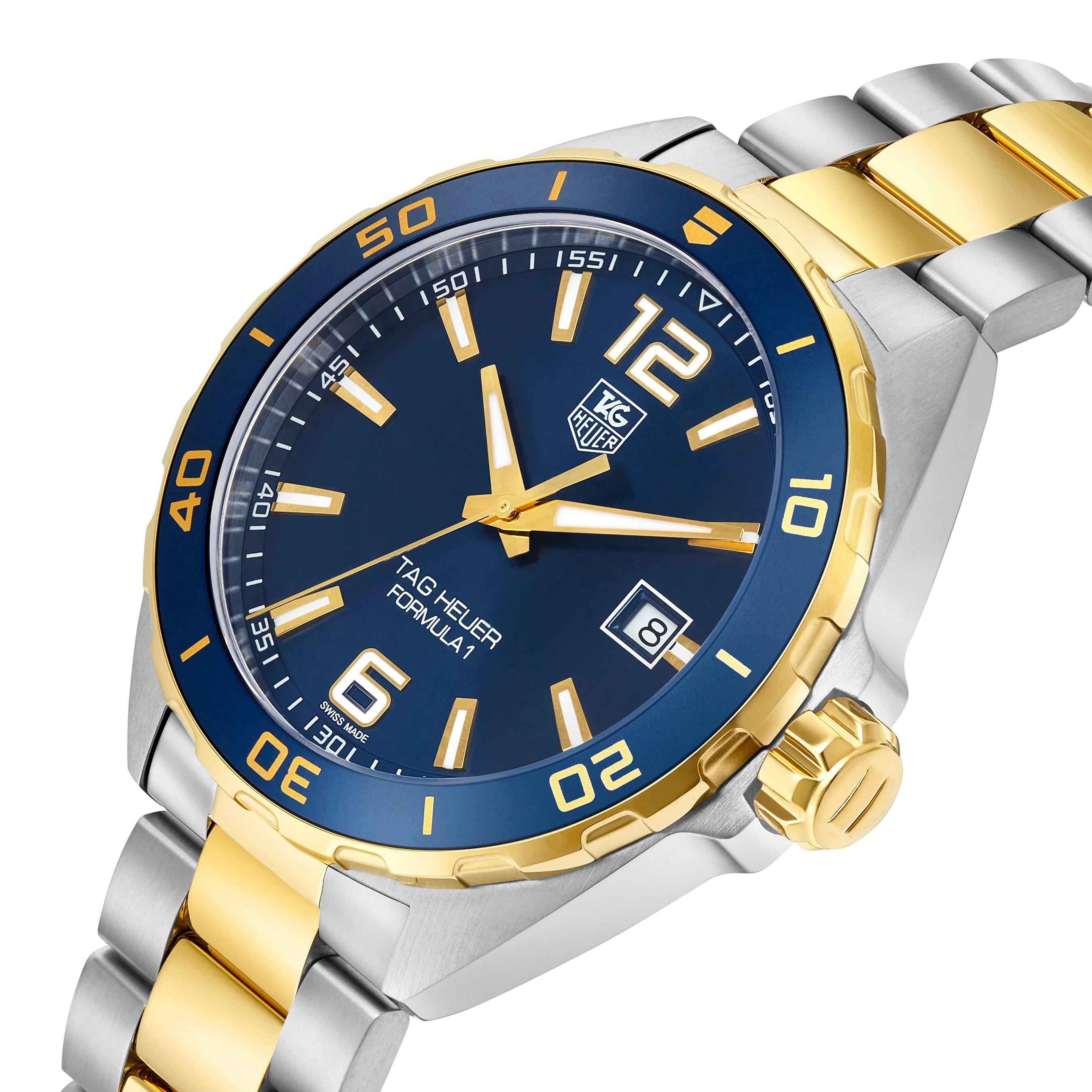 Tag heuer formula 1 navy blue dial analog mens watch silvergold. Inspired by the advanced technology synonymous with the formula 1 racetrack this collection is tough enough for the pros but elegant enough for everyday wear thanks to its wearable colorful materials. Find your next watch on ebay.