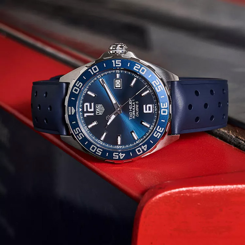 Tag heuer formula 1 calibre 5 blue. Tag heuer is the go to designer and manufacturer for driving watches and chronograph watches. Decouvrez en davantage sur le site officiel de tag heuer. The tag heuer aquaracer calibre 5 this model has a bezel numbered from 0 to 60 and either a 41 or a 43 millimeters case.
