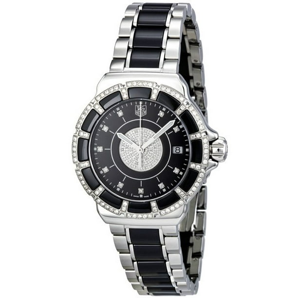 Tag heuer formula 1 diamond set ceramic ladies watch. Developed for both men and women this striking timepiece also is equally fit for the gym and for the office. Featuring a white analog dial diamond hour markers and a stainless steel bracelet with white ceramic center links this watch is an elegant addition to your wardrobe. Tag heuer formula 1 wah1221 ceramic diamond 36mm white dial.