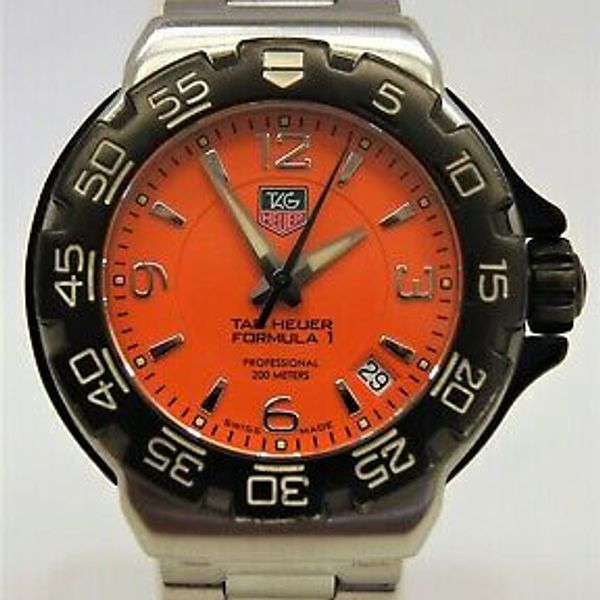 Midsize Tag Heuer Wac1213 Formula 1 Pro Orange Dial Stainless Quartz Watch Watchcharts