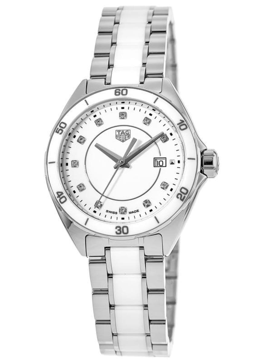 Tag heuer formula 1 womens diamond watch. This formula 1 diamond watch from tag heuer is a stylish hybrid of sporty and luxurious. Tag heuer formula 1 diamond chronograph cah1213ba0863 wrist watch for women 158000 tag heuer formula 1 wbj1418ba0664 white shell dial quartz ladies watch j95785. Featuring a white analog dial and a silver stainless steel bracelet with white ceramic center links this watch is an elegant addition to your wardrobe.