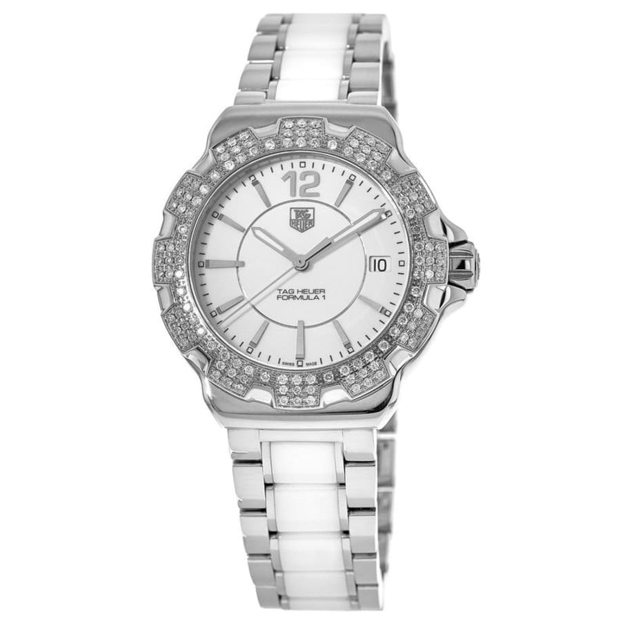 The tag heuer womens wah1313ba0868 formula 1 white diamond dial quartz watch is a sleek and sophisticated timepiece made for a woman with discriminating taste. Date display window at the 3 oclock position. We are the internets leading source for formula 1.