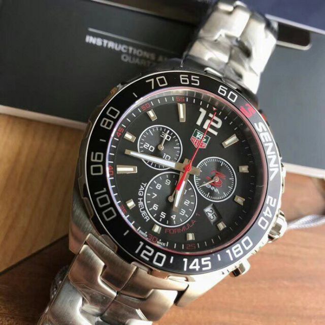 The top drivers wear the circuits top watch the hugely successful tag heuer formula 1. Tag heuer released a special formula 1 model as a tribute to the formula one brazilian legend ayrton senna 25 years since his untimely death. This tag heuer formula 1 senna watch is bold and dynamic with its unique embossed black rubber strap with eye catching red track detailing alongside the striking opaline black dial creating a bold contrast with its racing inspired red striped design and red seconds hand.