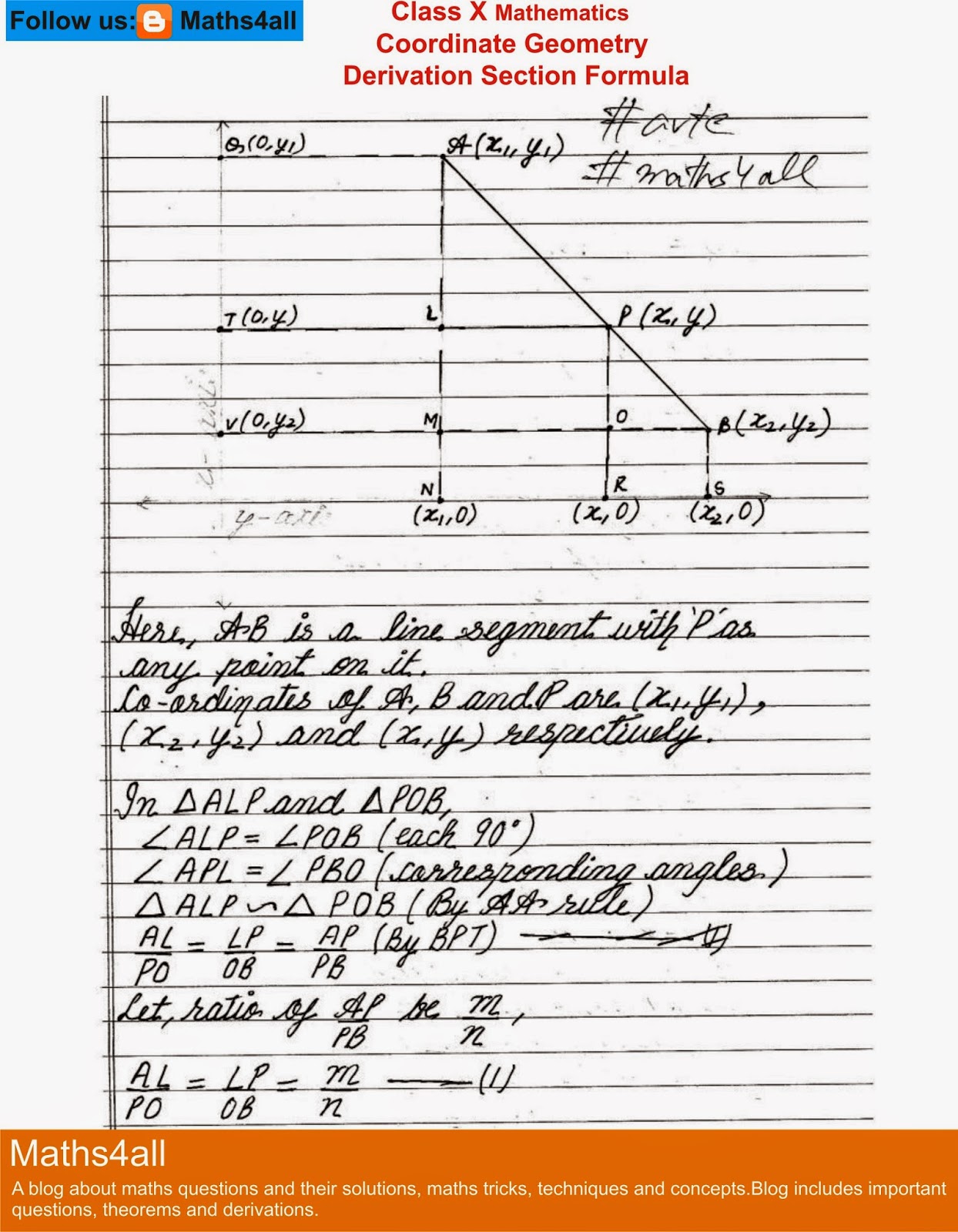 Basics of coordinate geometry for more information on basics of coordinate geometry watch the below video. Icse class 10 maths section and mid point formula section formula use section formula to find mid point of a line segment whose end points are known. The section formula helps in determining the coordinates of a point which facilitates division of the line joining two points in a ratio.