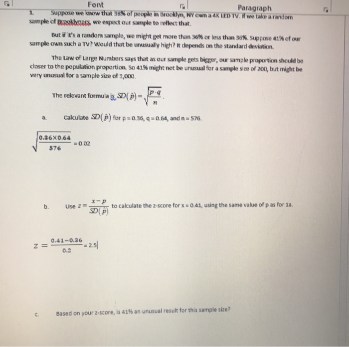 Z score formula for sample proportion. Formula in cell c8. From the table you determine that pz 144 1 09251 00749so if its true that 38 percent of all students taking the exam want math help then in a random sample of 100 students the probability of finding more than 45 needing math help is approximately 00749 by the central limit theorem. The formula produces a z score on the standard bell curve.